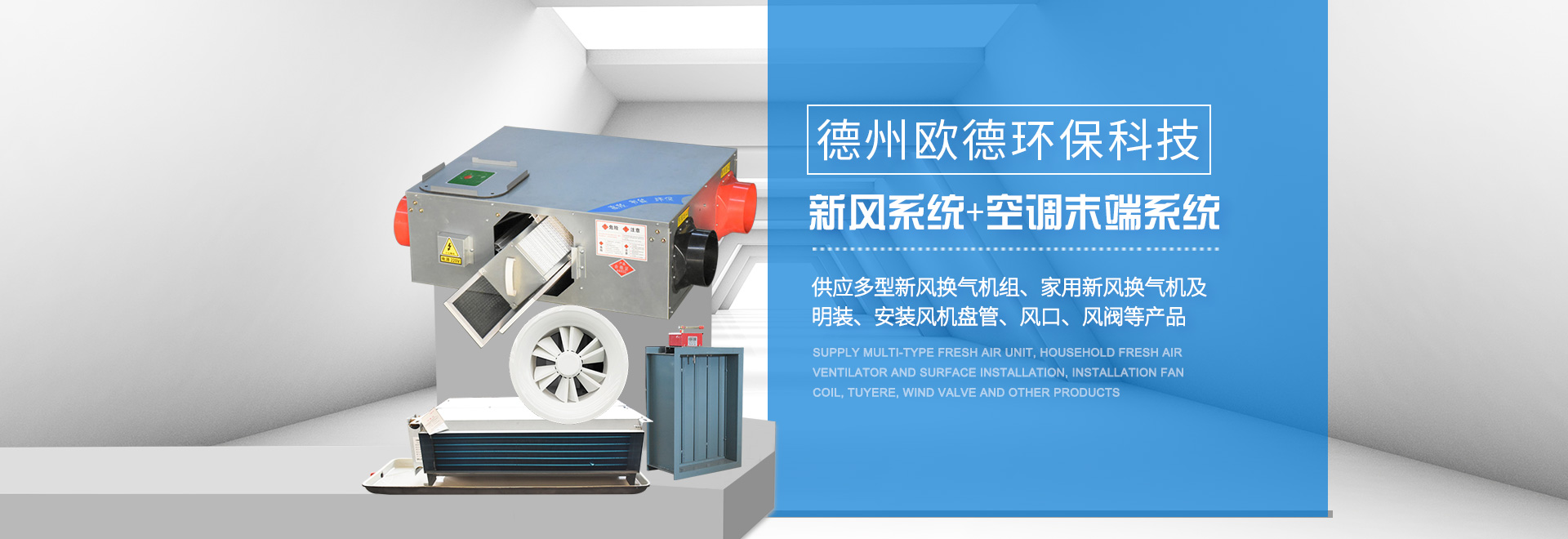 德州歐德環保科技有限公司位于山東省德州市武城經濟開發區,是一家集空調設備產、研、銷相結合的現代化企業。歐德以技術水平、服務標準,贏得客戶的信任。公司建有現代化水平的商用空調設備生產線與末端設備生產線,可定制生產多型空調設備。 公司主要產品:風機(排煙風機、軸流風機、邊墻風機、斜流風機(混流風機)、屋頂風機、離心風機、誘導風機)、新風處理機組、吊頂式空調器、風機盤管(臥式暗裝風機盤管、臥式明裝風機盤管、立式明裝風機盤管、卡式風機盤管等),各類通風管道(共板法蘭風管、酚醛風···